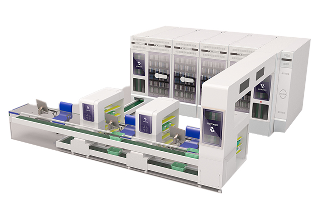 该系统是一套结合自动化控制与计算机管理的盒装药品的自动化储存、出药和发送系统,根据核心控制系统进行管理,根据医院信息系统传送的医嘱,在接收到发药指令后,即刻发出控制指令,使某一个(或多个)出药机构自动依照处方发送指定数量的药品。